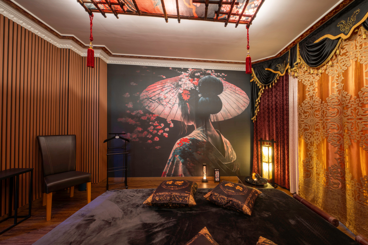 Zart, harmonisch und voller Anmut: Das Geisha-Zimmer vereint japanische Ästhetik mit schlichter Eleganz. Klare Linien, sanfte Farben und duftende Blüten schaffen eine Atmosphäre der inneren Balance – ideal, um Stille und Kraft neu zu entdecken.