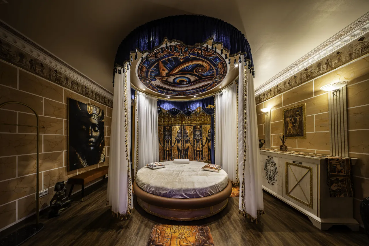 Goldene Akzente, sanftes Licht und der Hauch von Luxus: Der Raum Kleopatra entführt in die Welt des alten Ägyptens. Warme Farben, edle Stoffe und feine Düfte schaffen ein Ambiente, das königliche Ruhe und Geborgenheit ausstrahlt – jede Behandlung wird hier zum Ritual der Entschleunigung.